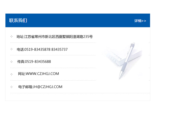 傳真:0519-83435688    郵編:213135    網址:WWW.czjhgj_com.tjbiaoben.com    電子郵箱:JH@czjhgj_com.tjbiaoben.com
